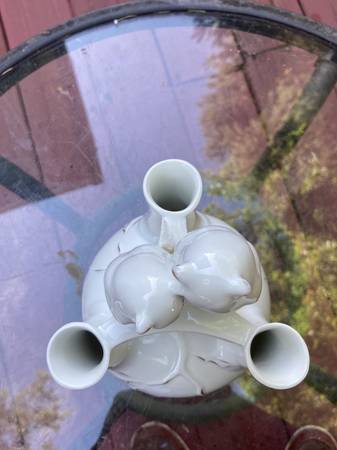 This detailed porcelain vase is perfect in every way, absolutely no flaws whatsoever. Not sure of the age but feel it could be significant,,,,please see the marks on the bottom. Measures 9" tall x...