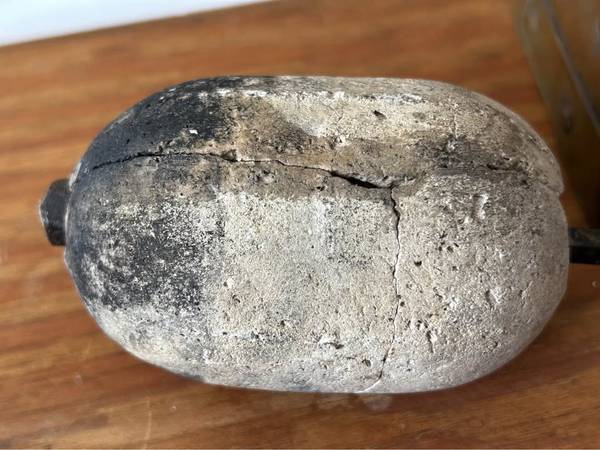 Function:This tool was used to start fires by soaking the stone or pumice end of the wand in kerosene or lamp oil, lighting it, and then using it to ignite the main fuel in a fireplace or stove.