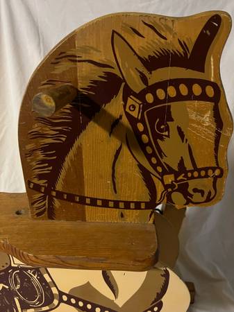 Vintage wooden rocking horse on springs, western cowboy style painted image in browns on cutout wooden horse silhouette. Can use some loving care due to age and use, especially needs new or refurbishing of springs. See pictures. Cash only on pickup. Serious buyers please message through CL with your contact info.