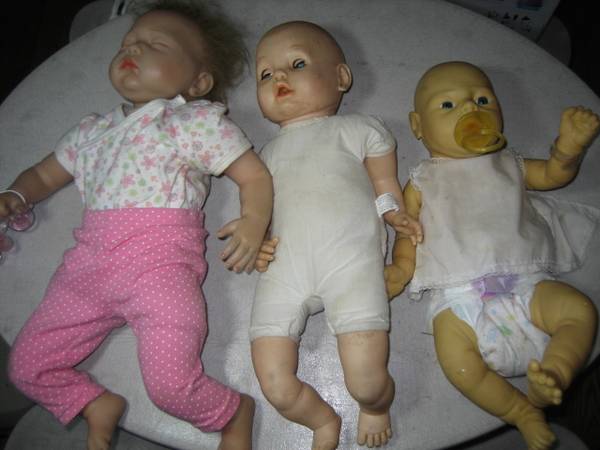 3 Life Like Reborn Realistic Dolls in decent condition. 3 for $20 No texts (land line) emails ok, phone calls are best 84544six5two58