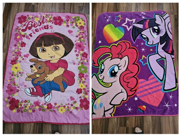 Dora the Explorer Best Friends Reversible Bed Cover & My Little Pony Blanket - $15.00 Each Dora dimensions: 55” x 40” My Little Pony Dimensions: 57” x 43” Both are in excellent condition!! I...