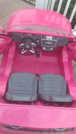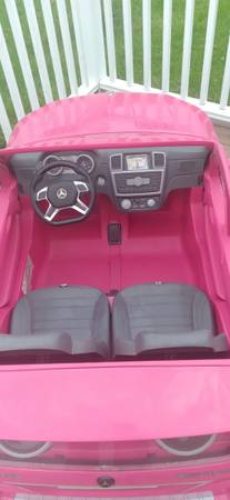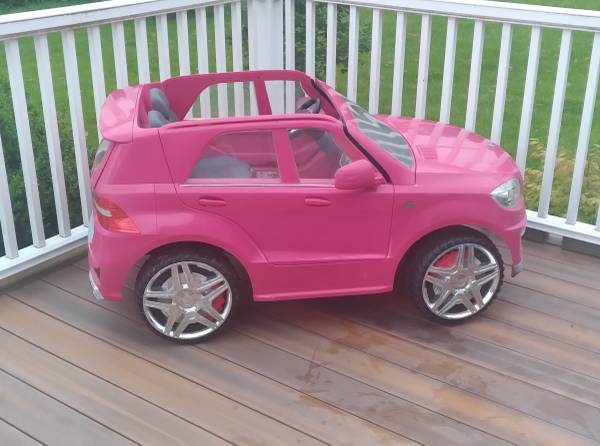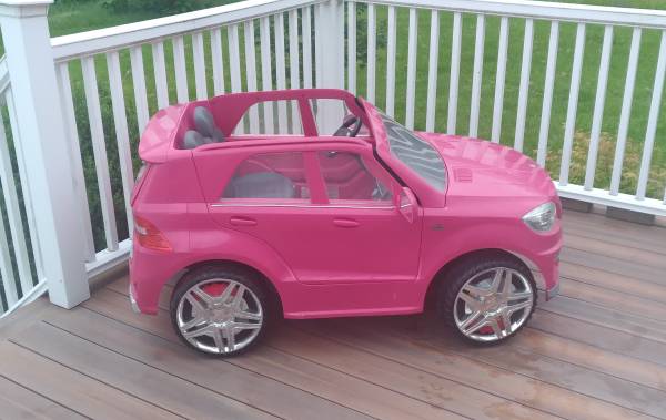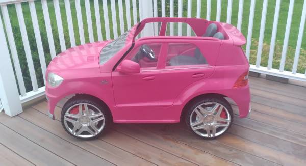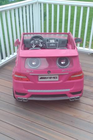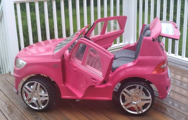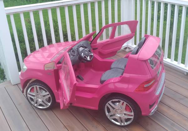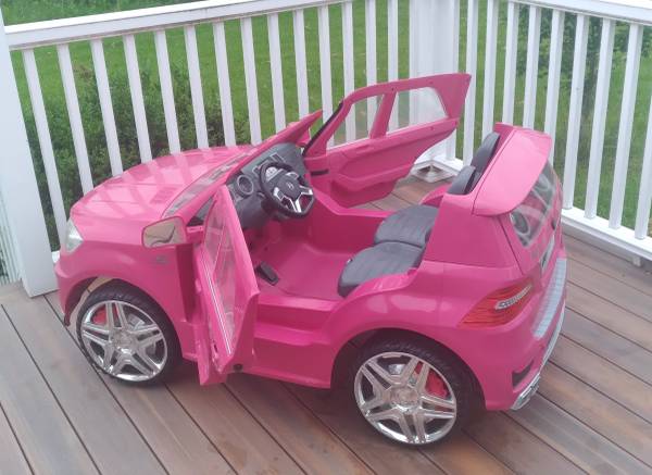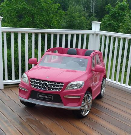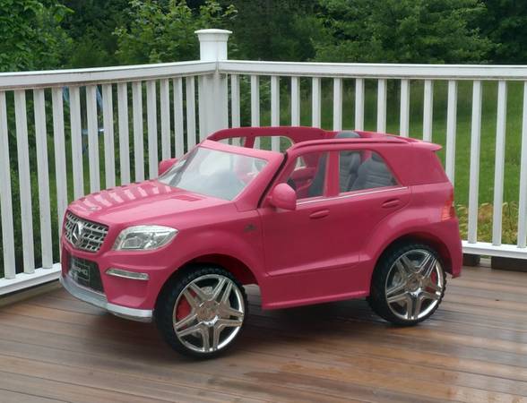 Stylish Mercedes ML63 AMG 12V Ride-On by KidTrax. Tons of authentic Mercedes-Benz details, a sleek pink paint job and chrome accents. There is room for two in the interior. Enjoy tunes via the MP3 connector and the mega-loud ported speaker system. The working L.E.D. headlights, premium clear windshield and a rear hatch that opens round out the amazing details. Complete with Power Trax Rubber traction strip tires for all terrain performance plus the Kid Trax exclusive Direct Connect one-step charging system.