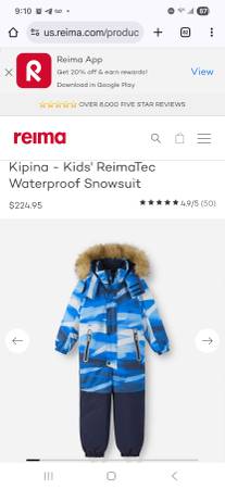 Gently used (worn twice) extremely warm and comfortable waterproof Reima Tec winter snowsuit overall purchased in Northern Europe. It was desiged for active winter outdoor play.