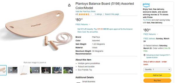 Plan Toys wooden balance board Preschool Elementary School Active - $40 (Montclair, NJ)