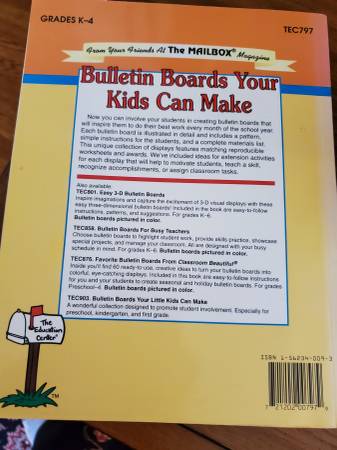 187 pages - Excellent Condition! No marks on pages missing! Bulletin Boards Your Kids Can Make from Mailbox Magazine. This book is not just for bulletin boards - it has a large selection of patterns (that can be colored and cut out) - awards and fun activities - all seasons/holidays, etc!