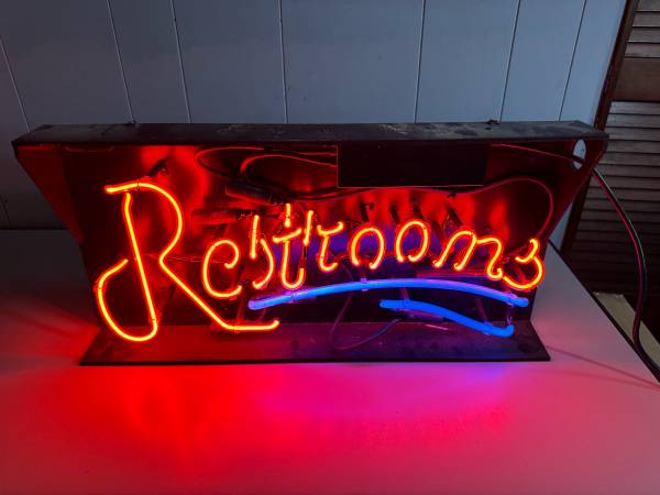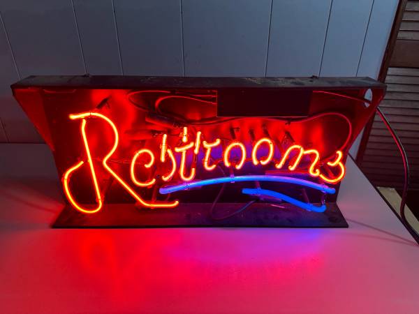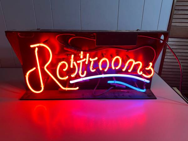 Restrooms Neon Sign - Compact Size 24"w x 11" Real, Bright Red and Blue Neon Excellent Condition! $80 Located in Bayonne zip 07002. Please email me your contact info if interested. If still on CL it...