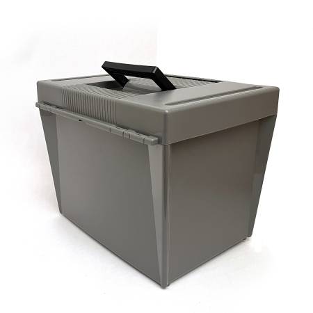 The Pendaflex Portable File Box is designed for storing letter-size hanging files, measuring 13.5 inches in length, 10 inches in width, and 10.75 inches in height.
