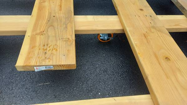 Custom made 4ft x 8ft dolly Mounted on (5) 4"dia casters. 2 are fixed, 3 are swivel mount. Perfect for moving Bagsters to the curb for pickup from Waste Management.