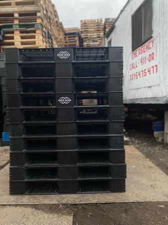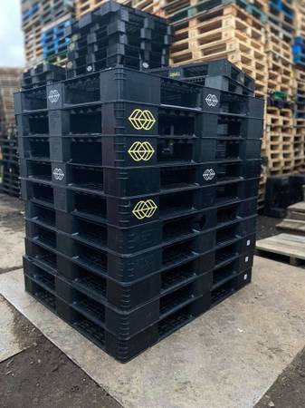 Good condition. 48x40 stackable rackable pallets. Pickup or delivery available. Minimum 10 pallets. Have other sizes and styles available
