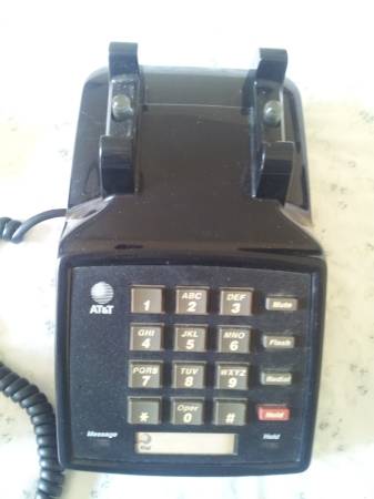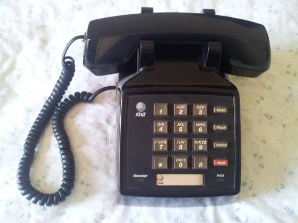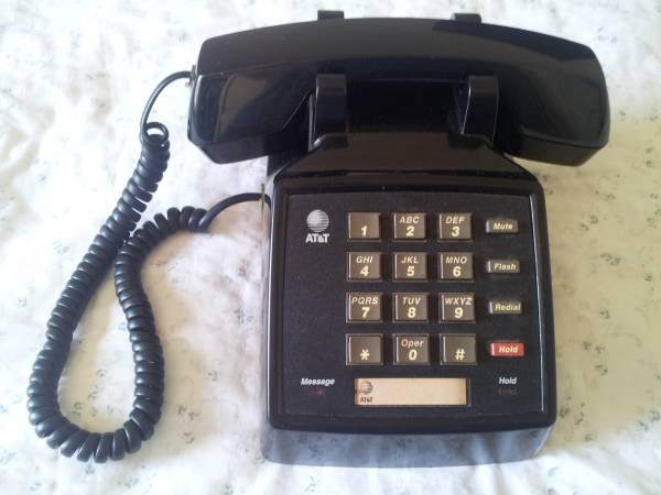 ATandT Model 2500 Telephone TMCL Black Landline Desk Phone. A vintage ATT 1990s desk table phone fully loaded with modern features!! Includes Message Indicator Light, Mute and Hold Features as well as Flash and Redial. Retro Features also include Tone or Pulse Selector, High, Low or Off Ringer Selection and Pos. On or Off Selector. Works Perfectly! Also includes 10 ft phone cord to connect to wall jack! Can Demo! Cash Only. Pick up Only in Guttenberg, NJ 07093. Thanks for your time and interest!