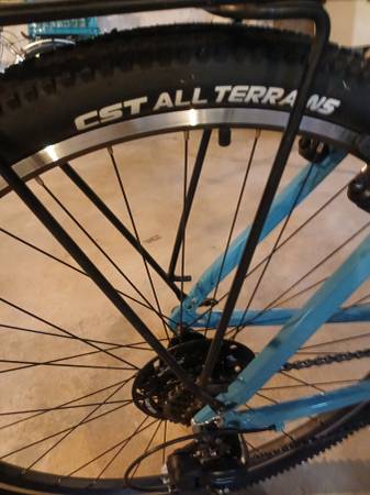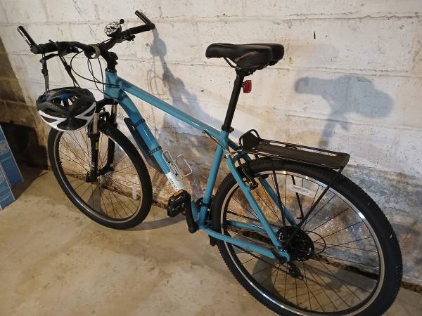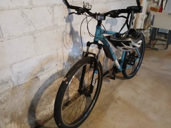 X-large blue frame 29 inch mountain bike with front suspension fork. 21 speed, 7 gears in the back. V - brakes. Bell. Riser handlebar and shorter stem added for more comfort. Practically new...