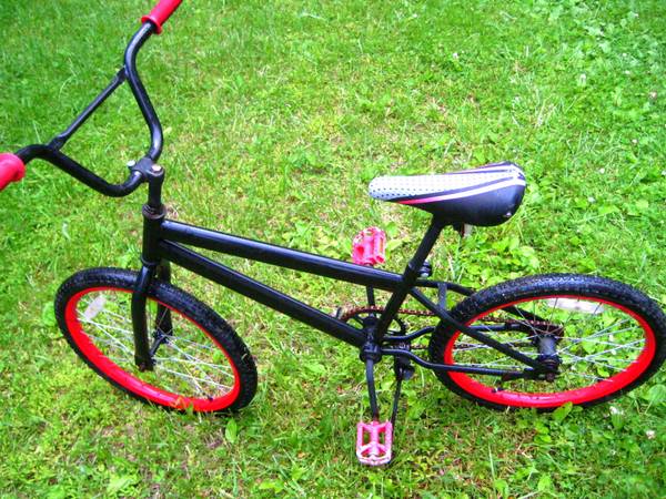Black BMX bike 20" with red rims