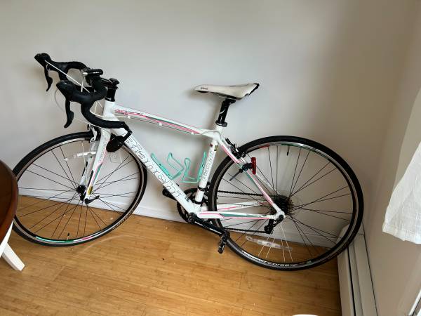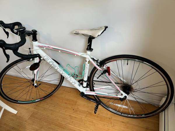 Just bought this bike a few weeks ago - no longer need it, paid 500 and asking for 500. Italian brand Bianchi - very nice, carbon road bike, not sure what year it is.