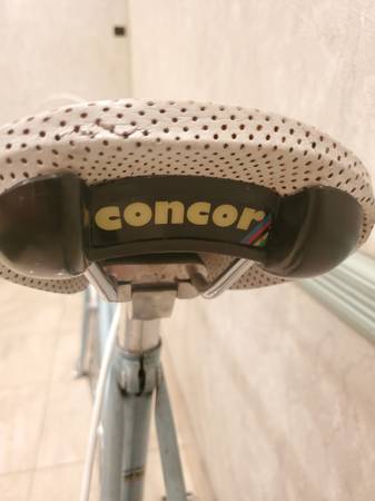 White Concor racing saddle, with matching white cables (fairly recently replaced)