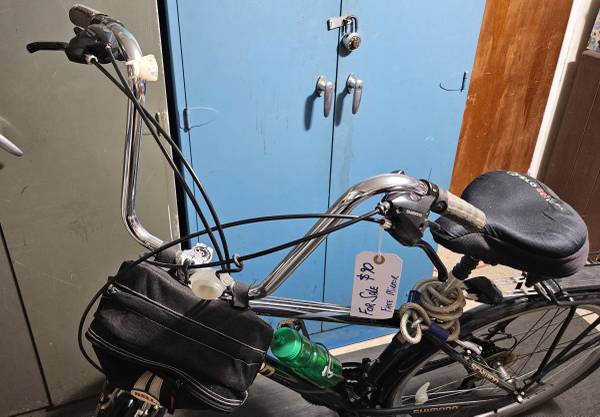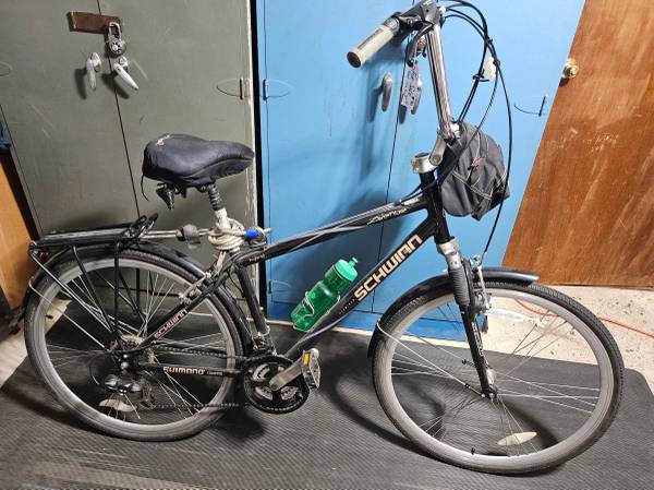 Up for sale is a Schwinn 'Customized' bicycle. It has 21 gears (26"). I bought it as a basic bike then started changing things. The flat handlebar was replaced with a higher one so I could ride without bending over (bad back). I still have the original handlebar if you want it. The seat was too hard/skinny for me... put on a much wider 'soft jell' model. It didn't come with fenders... added them after riding and it started raining. Put on a rear bike rack for carrying a basketball or packages. It has a water bottle holder. Added a 'Bell' storage bag in the front... uses a dual strap to attach it to the handlebar (removable). I have a new mirror (still in the package). I enjoyed ride in the evening... besides the front/back/wheel reflectors, I added two lights to the handlebars and put special lights in the wheel area (spokes) that light up. Always used a DOT reflective vest... never had a problem.