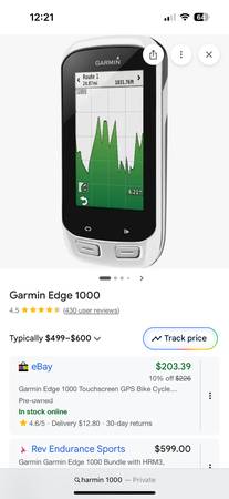 • GARMIN Edge 1000 GPS Bike Computer – originally $600
