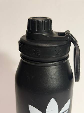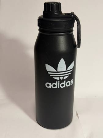 The Adidas Original Steel 1L Metal Water Bottle in black and white features a screw-on lid and is made of durable metal material. With a volume of 32 fl oz, this classic water bottle is designed for sports, adventure, and gym activities. It is equipped with interchangeable lids, is stainless steel and BPA free, and has a long-lasting 12-hour hot and 24-hour cold keepsake. This stylish and practical water bottle is perfect for staying hydrated on the go.