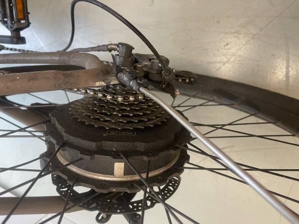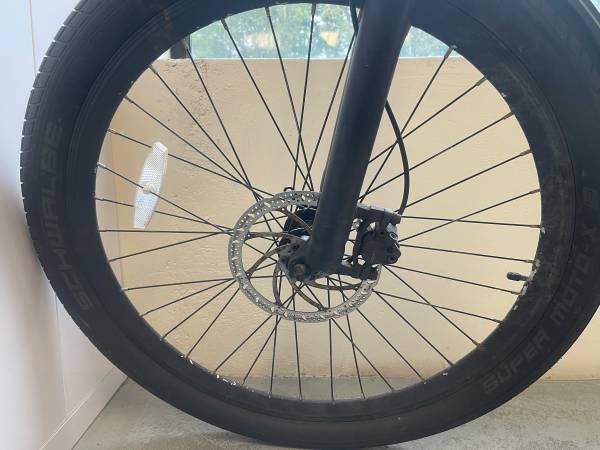Used ride 1 up LMT’D class 3 Ebike. New tires front and rear as well as road guard armor tubes to protect against flats. New back brakes installed, new front brakes still in packaging. Front and rear mud guards, upgraded seat. This bike has 4 speed modes during pedal assist, and a seperate full power throttle. It is very powerful with a 750W electric motor. Top speed during pedal assist on flat ground is about 30MPH. Range on a full charge is about 20-50 miles depending on what speed setting you are using. They sell new for $1600. This bike is not cosmetically perfect but is fully functional. Any questions just ask. Cash only, pickup only.