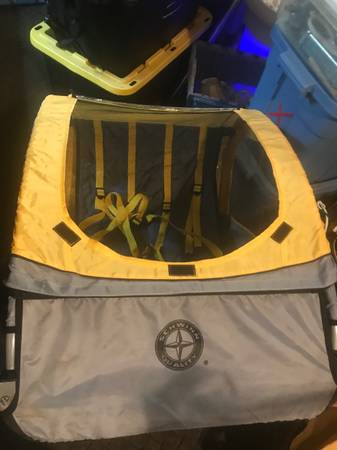 This is a Schwinn Foldable Bike trailer. Folds flat, even the wheels come off with a quick release. Easy fit into trunk! - LIKE NEW! Holds 2 Kids/small animals or whatever you'd like! Inside have...