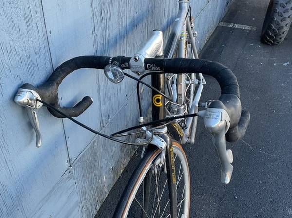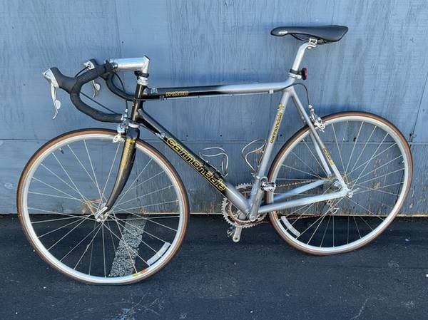 Selling this vintage Cannondale R1000 22.5" 700C 18 speed bicycle. The frame & fork are aluminum; the components are mostly Shimano Ultegra. The saddle, chain, handlebar grips, tires need to be replaced. There are a few surface abrasions more likely due to how it was stored than anything else. This is a good entry level road bike done over, or use as a platform for an upright build. The parts alone are worth more than the asking price. $150.00 CASH ONLY on pick up. If the listing is up it's available and asking such WILL BE IGNORED. It's located in Sussex New Jersey not far from the Vernon nHigh School and minutes from the Town of Warwick in neighboring New York State.