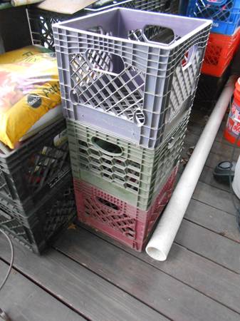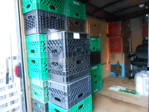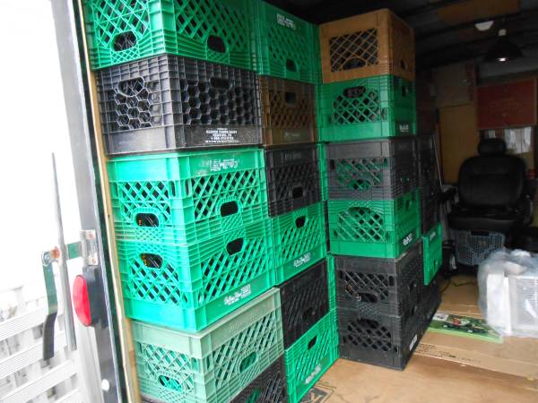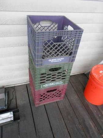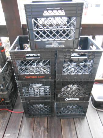 I currently have roughly 22 rectangle milk crate's. (21 green $8 each and 1 black $10 each) I have 20 square milk crates. 16 black, 1 grey, 1 maroon, 1 green, 1 red, square square crates for $6 each. These are great for many things like stacking with tool's, record's (records only fit in rectangle crates but not long wise), file's, dishes, side way's can put clothes in like in a dorm, CD's, DVD's, Blu-Ray, book's, magazine's, replace old torn cardboard boxes, if you are moving. These are Heavy Duty, Easy to stack, Great for storage of all kind's of things. These have handle opening's on all 4 side's. Please text Hank at show contact info
