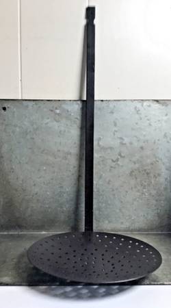 New Repro VINTAGE Lg HD Metal Slotted Butcher Skimmer Ladle Strainers Hang Display Decoration Hanging Holders Ladles Round Shelves for Candles w/Rings, Pumpkins / Gourds, Greens, Christmas Decorations, Life Plants or Vegetables - bottom line a Decorative Unique Platform for Display Every Season All Year Long Can be used Indoors or Out Heavy Duty and Very Sturdy Ideal for Porches, Decks, Fence or Other Posts, the Mantle just to name a Few let your Imagination have its way Measures 21" Tall at the Handle and 10" Wide at the Strainer with Holes Base Single Hole for Wire or a Screw to Hang (Neither are included) 5 Available at time of Listing Text works best show contact info