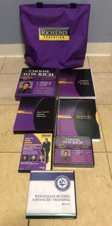 I AM SELLING A RICH DAD EDUCATION REAL ESTATE INVESTING COURSE FOR 300.00 CASH. THE PACKAGE COMES WITH AUDIO CD’S THAT YOU CAN LISTEN TO AND LEARN AT YOUR OWN PACE AND ON YOUR OWN TIME AND AT YOUR OWN CONVENIENCE. THERE IS A SOFT BINDER WITH OVER 300 PAGES OF KNOWLEDGE AND DOCUMENTS AND FORMS THAT YOU CAN USE. EVERYTHING THAT IS IN THE PICTURES IS INCLUDED. THIS SAME IN PERSON CLASS COSTS APPROXIMATELY 5,000.00 TO ATTEND. THE FIRST PERSON THAT COMES HERE WITH 300.00 CASH CAN TAKE IT ALL. IF ANYONE IS INTERESTED IN BUYING THIS AND HAS 300.00 CASH, PLEASE SEND ME YOUR PHONE NUMBER SO WE CAN MAKE ARRANGEMENTS TO BUY IT. AS LONG AS THIS LISTING IS STILL LISTED ON HERE, THE ITEM IS STILL FOR SALE. ONCE I SELL THE ITEM, I WILL REMOVE THE LISTING.