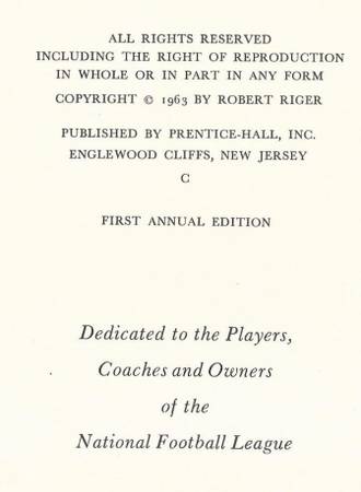 Hardcover book ..."Best Plays of the Year (1962): A Documentary of Pro Football in the National Football League" (1963 - 1st Annual Edition!) ... written by Robert Riger