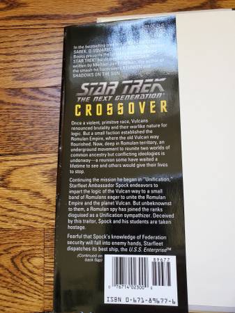 Star Trek The Next Generation Crossover - a Novel by Michael Jan Friedman - Hardcover with paper jacket - 305 pages