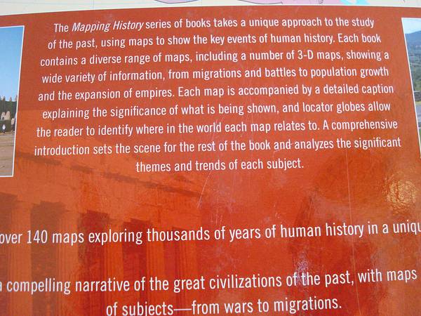 Mapping History Ancient World over 140 easy to read maps explore the great civilizations of the past, including the Egyptians, Greeks, Romans, Aztecs, and more.