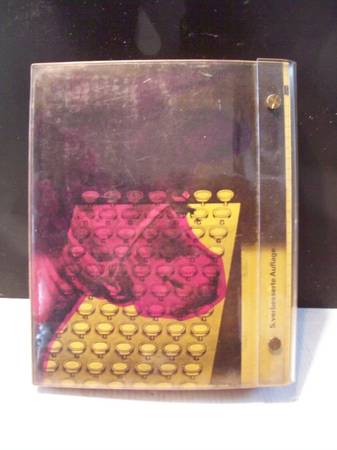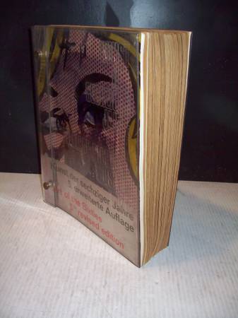 "Köln, 1971. Fifth revised edition. Softcover. Unpaginated. 30 × 25. cm. Text in German and English. Used. VG+. Art publications, art books, books about art… this is something else. This is the best art book ever and ever. An iconic and gorgeous catalogue that contains art work from major Sixties artists, including Beuys, Caro, Hamilton, Lichtenstein, Oldenberg, Paolozzi, Rauschenberg, Stella, Twombly, Warhol, among others. With a wonderful design by Wolf Wostell. Soft cover with embossed flexible plastic covers and a hard acrylic spine, bound with stainless steel bolts. Multiple paper stocks and printing effects, brown fabric paper with color plates, printed transparent slipsheets with a portrait of each represented artist printed, fold-outs… Between the best coffee table books, better to talk about luxury coffee table books ;) And this is the fifth edition! The final edition, updated and expanded!"