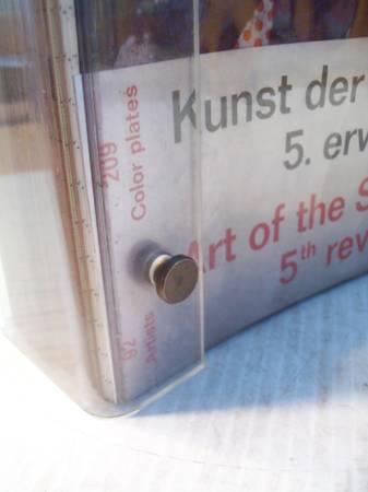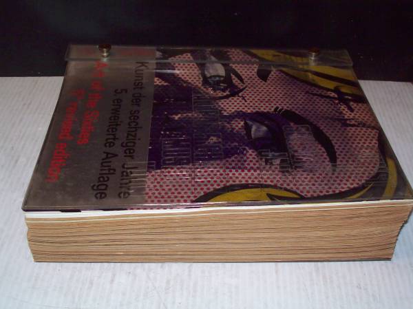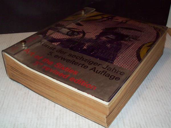 Offered for Sale is this RARE 1971 Vintage Art of the Sixties 5th Revised Edition POP ART Book in VGUC. The book is a Fifth Edition, printed in 1971, unpaginated, and measures 9-3/4" x 11-7/8" x 2-7/8" across at the acrylic spine end cap. Ninety-two artists are represented with 209 color plates. The text sheets are printed in German & English, but not necessarily together on the same page - some of the text is only in German. The text sheets are both mylar and heavy stock paper, with clear mylar pages having a photographic image printed on them of the respective artist, or something representing the artist. (There is no image for artist Malcom Morley). There are also half-sheets, as well as some of the color plates fold out.