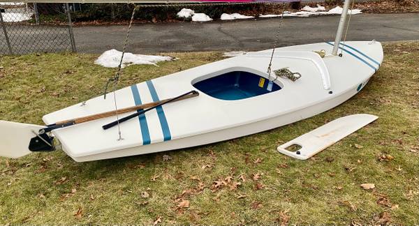 14ft 2004 Vanguard Sunfish sailboat. Excellent condition. Hull is clean, light weight, and has no patches or repairs. Hull bottom is very clean. Sunfish includes class-approved North sail that is in great shape, hiking strap, adjustable gooseneck, and fiberglass daggerboard and rudder. Ready to be sailed and enjoyed.
