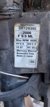 2006 Mercury 9.9hp 4 Stroke Outboard Motor OR129395 - ** 20" Long Shaft - Motor is not starting think its the head gasket - Sold as is Sold For parts or repair as is - as shown. no throttle or cables (stand NOT included) $325