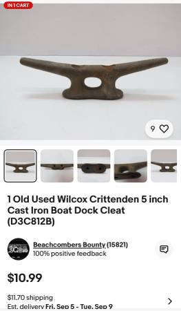 Wilcox Crittenden 5” Dock Tie Down Cleat Finish: Hot Dipped Galvanized USA manufactured Purchased in 1993 and never installed Used Cleats online - WC Cleat is $11 plus tax and a $11 shipping and...