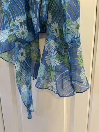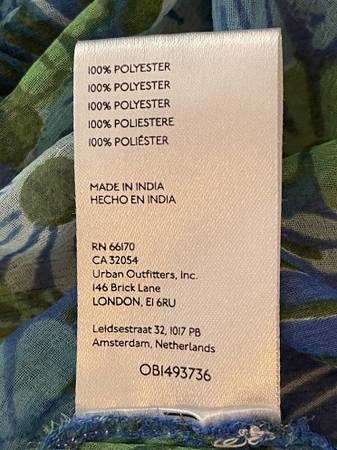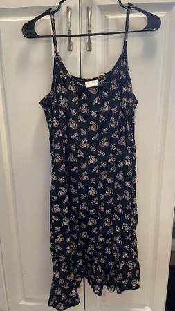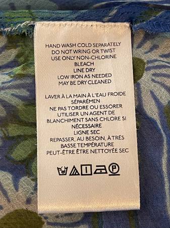 Tag says size 42 but that appears to be the European size based on the tags. Not sure of the American conversion. (Approximately 18” across chest under each arm from seam to seam when lying flat on table. Approximately 36” from where the straps are attached to the garment to the bottom of the longest part of the dress. I did not include the straps in the length because they are adjustable.
