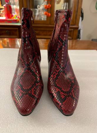 Like New Amelia Grace Nadita Faux Snakeskin Red & Black Booties - Size 9.5M