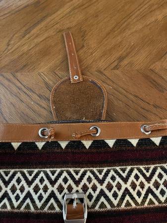 There are no tags in regard to brand or material, but I believe it’s partially leather.
