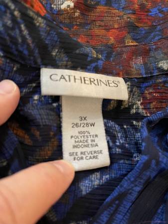Catherine’s Like New 3x Plus Size Blouse - 26/28W - Blue, Red, White - 3/4 Sleeves Size: 3x (26/28W) Has a sheer quality to it. See last picture. Condition: Like New Colors: Blue, Red, White...
