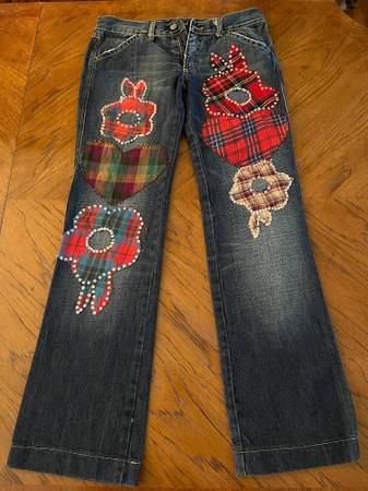 Women’s BJJ Jeans with Abstract Flannel Patterns on Front - Size 30 - in Excellent to Like New Condition