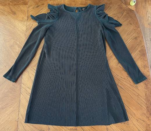 Like New Dark Green Mossimo Stretchy Dress with Ruffled Cold Shoulders Size Small