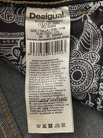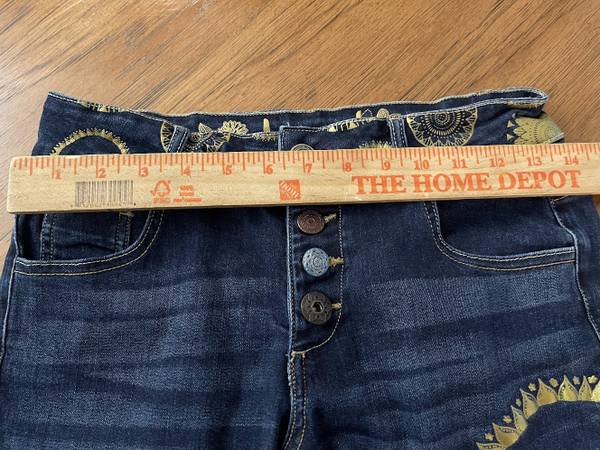 Size: 26 (Please note that the label does not mention USA in size). See pics next to yard stick for a better idea of size.
