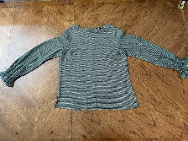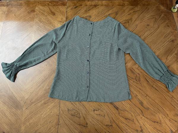 Size: XS (Measure approximately 16” across chest from seam to seam under each arm, approximately 25” from highest point of shoulder to bottom of blouse)