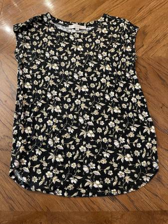 Black Loft Blouse with Tan Floral Print - Extra Small