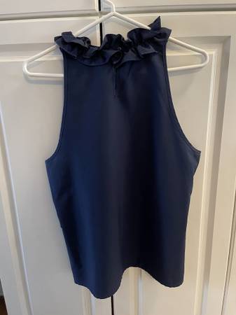Forever 21 Essentials Navy Blue Ruffle Neck Sleeveless Top - Like New - Large Size: Large Slightly wrinkled from storage. Price: $15.00 Posted by SSL1111