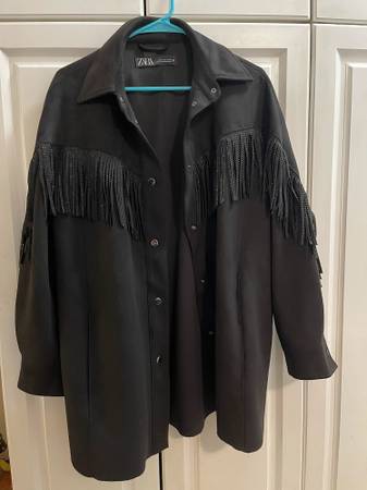 Beautiful Zara Women’s Like New Faux Suede Light Weight Black Button Down Fringe Jacket - Size Medium