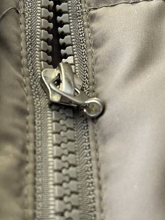Condition: Has one very minor tiny spot on the back about 2/16th” big. See last pic. Barely noticeable. Otherwise, no stains or rips or anything of that nature. Overall condition is excellent to like new!! See following about zipper.