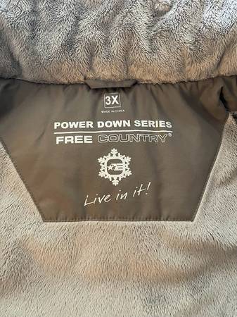 Women’s Free Country Power Down Series 3X Grey Puffer Jacket with Detachable Hood in Excellent Condition
