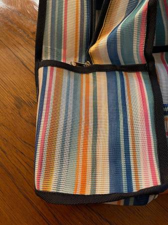 It folds out to look like a normal tote and a matching bag that looks like a cosmetics bag. It’s still folding in the pictures from being in the packaging. Once contents are inserted, it will look like a normal tote. Brand-new. Opened only for pictures!!