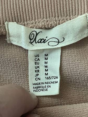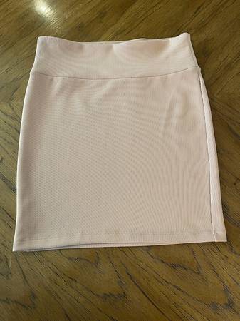 Color: Hard to describe but I would say tan with a hint of peach Size: Medium (Measures approximately 14” across top of waist when laying flat on the table and 18” high from top of waist to bottom of skirt)